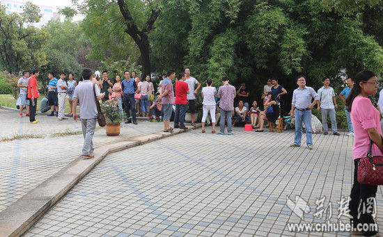 数十老师陆陆续续在学校广场聚集
