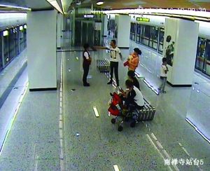 事情发生在9月16日中午12点25分,当时1名男乘客、3名女乘客带着2名儿童,出现在无锡地铁1号线南禅寺站台。监控上显示,一名男子坐在站台候车座椅上,抱着孩子在小便。