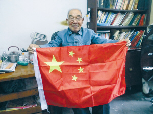 昨日,晚报把20面国旗送给张大爷,他非常高兴:“小时候吃过苦,知道现在的甜。我就想以这样的形式祝福祖国,祖国繁荣昌盛,我们都是受益者。在有生之年,我一定坚持挂国旗。”