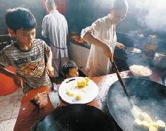 庵里人多,吃饭困难,金禅法师就和孩子们种花生、地瓜来补充。周边的民众也会送一些蔬菜、水果来,社会各界也会捐些香火钱。金禅和孩子们住的宿舍,就是一些善心人士资助而建的。