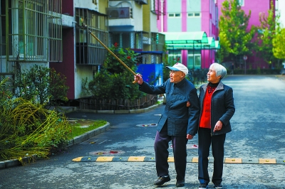◀ 窦老爷子已经92岁高龄,他的大女儿也已经满头白发,女儿每天都会陪着父亲在小寨村回迁的小区里散步,过去村里的平房已经变成现代化的小区,全村人都住进了楼房。