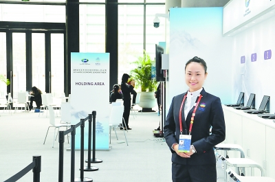 早上7时30分,志愿者余斐羽就来到数字北京大厦的APEC会议周注册区。此时距离正式上岗服务还有30分钟,余斐羽提前上岗,检查电脑运行状态,没想到真发现了问题。