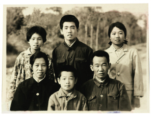 1983年,平吉堡叶家门前,前排左起:张秀云、小儿子、叶永发;后排左起:小女儿、大儿子、大女儿。