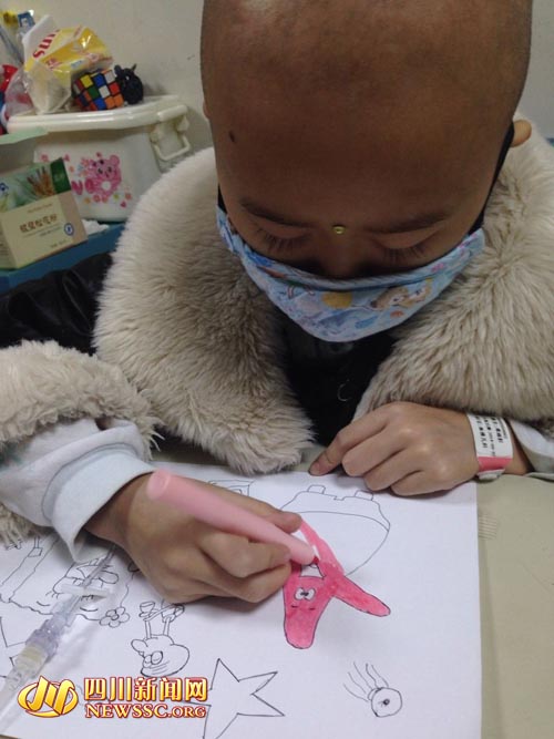 6岁女童杉杉罹患白血病 每日作画用色彩装扮病房(图)
