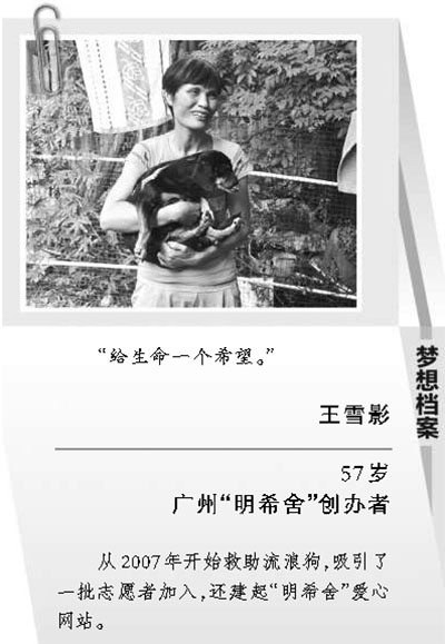 在她的感召下,越来越多的爱狗人士聚集在她的周围,送狗粮、捐狗药、给狗看病,还建起了“明希舍”爱心网站。