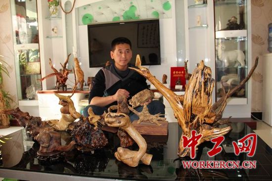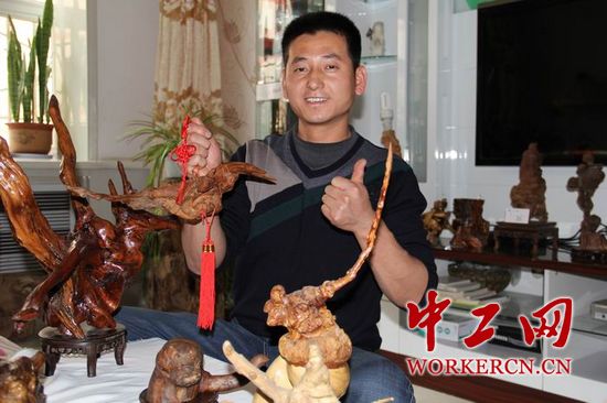赵宏亮:把"朽木"雕成精美的工艺品(组图)
