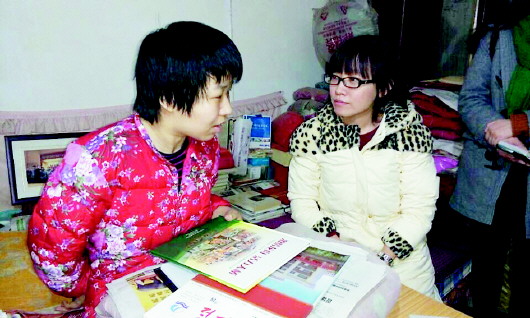 由于类风湿性关节炎导致全身关节变形,她不能起身行走,坐在书堆里,她直起身来,给来人一个灿烂的笑。