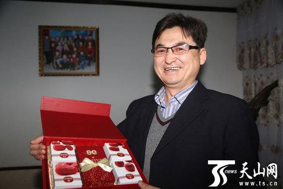 克拉玛依市“敬业奉献”道德模范肉孜麦麦提·巴克收到礼盒后的感受是“温暖”:“我是一个石油工人,我觉得我还有更大能力可以发挥出来,能得到这份礼物我觉得很温暖很高兴。”