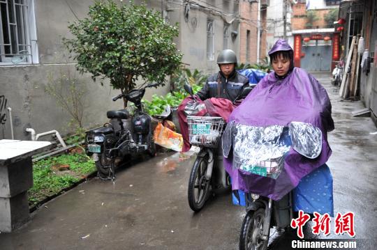 图为彭辛怡父母骑电动车去医院看望辛怡。 吕明 摄