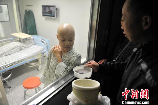 当天,来到医院无菌仓,隔着玻璃,陈美勇把煮好的汤圆给女儿看。辛怡并不能吃,她只吃得下线面糊,但他们一家都喜欢这样的分享形式。