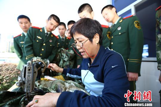虽然,该中队的干部战士在变,但阿姨为官兵补衣服的传统却一直在坚持。有时候她和中队的战士聊天的时候,这样说道:“你们啊,就像我自己的孩子一样,看到你们穿着我补得的衣服,我心里就特别开心。”这样朴实无华的言语却透露出了她对战士深深的爱,对部队暖暖的情。