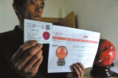 一件网上出售的红水晶球的摆件,经权威机构鉴定为玻璃球。 京华时报记者徐晓帆摄