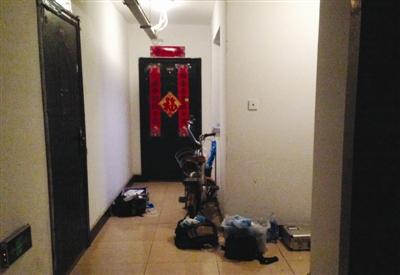 随后,程丽和一位邻居结伴,打算乘电梯上26楼看看,记者跟随前往。在26楼,警方正在屋内勘察现场,法医人员戴着口罩、手套,一个装着勘察器材的手提箱放在门前过道上。