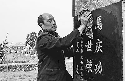 王志杰在仔细擦拭烈士墓碑。记者 史自强摄