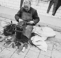 说起身残志坚的修鞋匠李胜德,十里八村的乡亲们都会为他的娴熟手艺和他对这个平凡工作的坚持和热爱赞叹。3月30日,当记者见到李胜德时,消瘦的身躯,头发花白,鼻梁上架着一副老花镜,一手拿着锤子,一手拿着鞋钉,正聚精会神地给一位顾客钉鞋、修补、打磨……每一道工序都做得非常细致。他的旁边坐着一排老人,一边聊天,一边等着“修补完好”,一片欢声笑语让这个鞋摊显得格外温馨。但是说起修鞋这项工作,他不无惋惜地说:“现在做这种事的人越来越少了,恐怕以后这个职业会消失的。”
