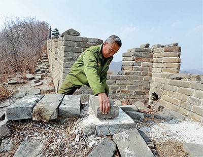 他说从小在长城脚下长大,守护长城,乐在其中。“我看护长城就像看护自家的院墙,谁动一砖一石都不行!”