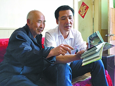 王瑞全正在陪李万良老爷子一起翻看家庭相册。王海燕摄