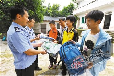 昨日,渝北区珞碛镇派出所民警,给三个孩子送来学习用品。