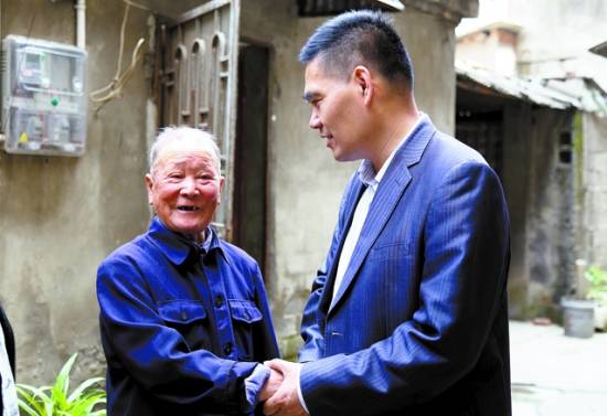 91岁的盛孝如老人早早地坐在堂屋大桌子旁,静候邵建波一行的到来,这个时刻对他来说不同寻常。
