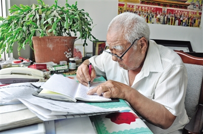 这位参加过辽沈战役、平津战役、抗美援朝战争等百余次大小战役的老兵,没有上过学,离休之后却靠着自学的积累每年都要写一本日记。其中的一本日记上写到:“我每天夜里,要把一天学习、办事的情况都回想一遍,看看和群众说的话、做的事有没有不周到的地方;阅读的书报内容有没有真懂;计划完成的事情做没做完。”蓝色圆珠笔字迹的后面,又用红色的字迹跟了一句,“一定坚持下去”。