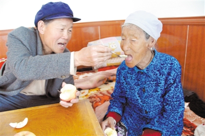 94岁的老母亲和65岁的儿子,构成了一道独特的风景。王泓说,每天叫上一声“妈妈”,还能听到有人答应,这就是我的幸福。