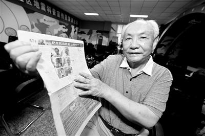 老兵陈乐扬展示晨报10年前对他的报道。(记者 邵丹 摄)