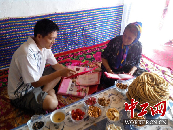 辖区危旧房屋居多,遇到天下雨房屋必漏雨。每当天下雨的时候,热比汗就到辖区每家每户去走访。看看张三家的房屋是否漏雨,瞧瞧李四家的院墙是否有破损,走访最多的是76岁的五七工廖天模老人家。廖天模患有脑梗、高血压、头颈部和腰部因长瘤多次手术。老伴林秀华身体不好,长年有病。老俩口依靠廖天模微薄的工资度日。儿子廖祥旺常年在外打工顾不了家。老俩口住的是危房,墙面多处裂缝,房顶漏雨。一到下雨天,热比汗想的最多的就是老人家的房屋是否漏雨了,墙面裂缝是否又大了,老人是否有危险。他放下手头的活,用刚领到的低保金买来塑料布,叫来社区干部将塑料布盖上廖天模老人的房顶,用泥巴和砖头堵上墙面的多处裂缝。廖天模的老伴林秀华看在眼里,感动的直掉泪,她拿来一杯水说什么也要热比汗喝一口,不料脚下踩空摔坏了左臂,无法干活,一家人的吃饭成了问题。往后的日子里,在林秀华手臂恢复之前,每天为廖天模老俩口做饭送饭成了热比汗的主要任务。