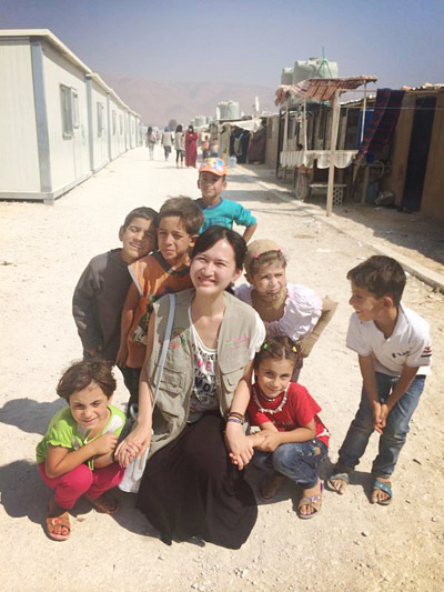 于凡和黎巴嫩难民营中和孩子们在一起合影。 于凡/供图
