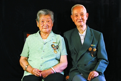 认真整理好衣装、奖章,两位老人携手走到镜头前拍下一张合影。70年后,这对抗战烽火中走出的伉俪还将继续书写属于自己的传奇。