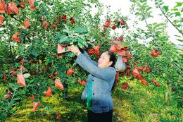 刘冬梅在果园里劳作。