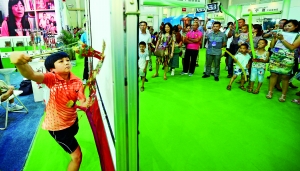 在不久前武汉闭幕的全国残疾人技能大赛上,龙在天演员在北京残联展台上为观众献艺。