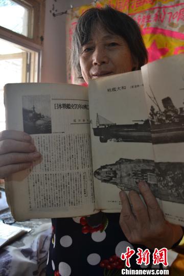 30日,谭翠兰向记者展示《日本军舰写真总集》,全书用日文讲述了日本军舰的历史及当年运输中国物资的航线。 苏路程 摄 苏路程 摄