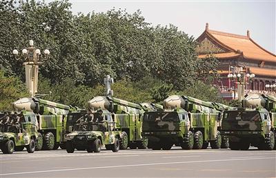 由6个方队、7种导弹型号组成的战略打击模块隆重登场。东风15B、东风16、东风21D、长剑10A、东风26、东风31A、东风5B……东风浩荡,雷霆万钧;大国长剑,安全基石。