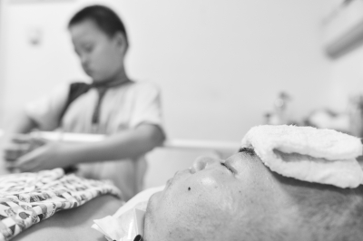 张绪金含泪说,老两口和儿子儿媳、孙儿住在汉口王家墩东,今年上半年,才买了新房,儿子也买了车,本来很幸福的一家人却突然发生这样的变故。他抚摸着儿子的脸庞,流下泪来,叹着气说,“太年轻了。”记者看到,闭着眼睛的张志强,左眼浸出泪水,打湿了睫毛。他的母亲用纱布小心为儿子擦干。