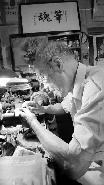 前不久,我在朋友高志坚那里看到一组照片,拍的是修笔老人张广义。志坚说老人的修笔店几十年没动地方,还在原处。只是老人毕竟年事已高,修笔店不是总开门。另外,老人家很低调,并不张罗媒体采访。