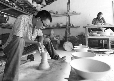 陈记柴窑陶瓷厂建于清朝乾隆年间,至今已有300余年历史,63岁的陈克余制陶已50多年,他29岁的儿子陈振云是第10代传人。