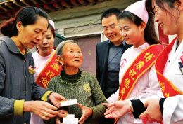 给阳高县邢家堡村91岁的王秀英老妈妈送去药品。