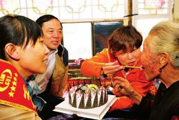 带领爱心团队队员为90岁的董仙茹老妈妈过生日。