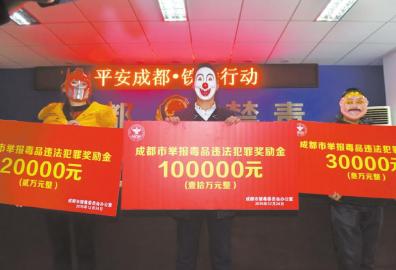 12月24日上午,5个戴着面具的蒙面人进入了位于水碾河南路的成都市公安局禁毒支队,多数人一 言不发,神秘十足!经过打探,原来他们是成都版的“朝阳区群众”,因为提供了有效的打击毒品案件的线索,他们每人都获得了数额不等的奖金,最高达10万元。据了解,这是今年10月《成都市群众举报毒品违法犯罪奖励办法》(以下简称《办法》)出台之后,发出的最高单笔奖励金。