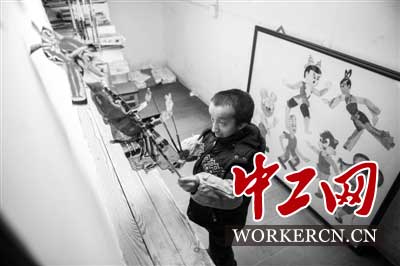一名袖珍人正在练习皮影戏。 中工网记者 王伟伟摄