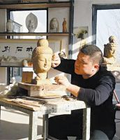 本报1月4日讯(记者 郭斌)“我要复原云冈流失的佛像,弥补云冈石窟的缺憾!”央视《远方的家》近日播出的《长城边的艺术瑰宝》节目中,一名年轻民间艺人的举动引起不少人的关注:他要利用手上的刻刀,雕制复原云冈石窟流失的佛像,让世人领略云冈石窟的全貌风采!这名年轻人叫郭文敬,1月1日,记者在云冈石窟景区采访到了他。“接受完央视的采访后,我感觉这件事已经不仅止于兴趣了,而是一份责任。”简单的工作室里,郭文敬的雕塑作品安静地沐浴在阳光里,满屋流淌着古朴率真的独特韵味。