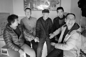 幸福的一家人。(中间老者是刘哑巴,从左到右依次是他的外甥媳妇蒋秀芹,外甥李泽民、李泽营、李泽明。)