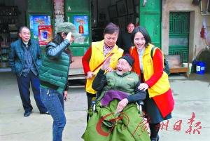 广州日报和平讯 (记者曾焕阳 通讯员叶建伦、苏远龙、谢全建摄影报道)昨日是河源市和平县阳明镇丰道村村民、淞沪抗战老兵黄胜庸111岁生日。前日中午,20多名河源关爱抗战老兵志愿者提前赶赴和平县城为老兵庆生,送来礼金以及奶粉、茶叶、寿匾、御寒衣物等慰问品一批。
