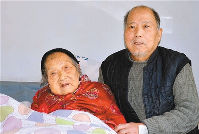 101岁的达月香(左)和儿子在一起(记者 王旭东 摄)