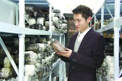 王贤江老家在湖北阳新县,2012年从该校生物技术及应用专业毕业。上个月,他收到了国家知识产权局发来的通知,他申报的“一种食用菌木签菌种的制作方法”通过审核。据了解,这种方法是将菌类微生物培养在木签上,然后放入无菌塑料瓶或塑料袋中,保证一定的湿度。过半个月,食用菌就会发出来,然后将菌种接到木屑、农作物秸秆等更大的培养基上,短周期菌类再过20天就可以成熟食用了。这种方式可以用来种植灵芝、平菇、香菇等多种食用菌。