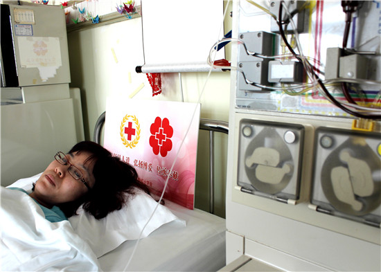 扈秀花在进行淋巴细胞采集捐献 拍摄者:张娜