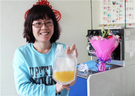 2016年3月21日,同样是北京,同样是这位身材瘦小的小学老师,受捐者仍是那位8000公里之外的意大利患者,这一次,扈秀花完成了86毫升淋巴细胞混悬液的采集捐献。