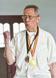 出征之前,他就将这枚金牌视为囊中之物,甚至主动跑去成都市老体协口头立下“军令状”。他预想这次肯定冠军归“蜀”,只是没想到赢得那么顺利,五场比赛全部以3:0力克对手。谈及外国对手,他觉得这些同龄人“不堪一击”,他偶尔故意接发球失误,让对方一两分。儿子余迺成批评这是不尊重对手的表现,陈永宁“狡辩”道:“大家都是90多岁的老人,如果给对方‘剃光头’那多尴尬。”