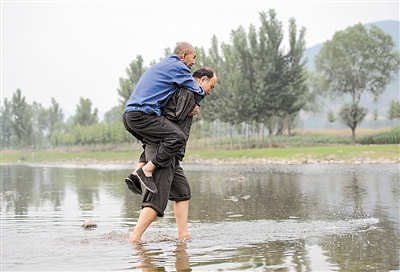 从村边到河滩,有3公里远,高高低低、坑洼不平,两个54岁的残疾人走得异常艰难。
