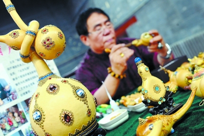 至于传人,康驹祥按照家规,肯定想把手艺传给儿子。不过,现在的年轻人是否能真的接过这门几百年的手艺,康驹祥也没把握。“毕竟现在的年轻人吃不了我爸和我的那份儿苦。”不过,如果能让葫芦艺术更多地在新闻上曝光,让更多人了解到葫芦工艺的博大精深,想来有朝一日,总会有人把这门儿传统手艺传下去。康驹祥倒也看得淡然。(本报记者 安旭东 摄影报道)